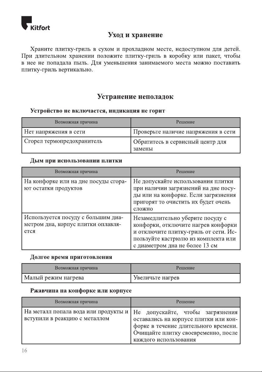 Данная инструкция на русском языке предназначена для плиты Kitfort KT-2076, описывает принцип работы и основные моменты эксплуатации устройства. Перед первым включением рекомендуется внимательно изучить данное руководство.