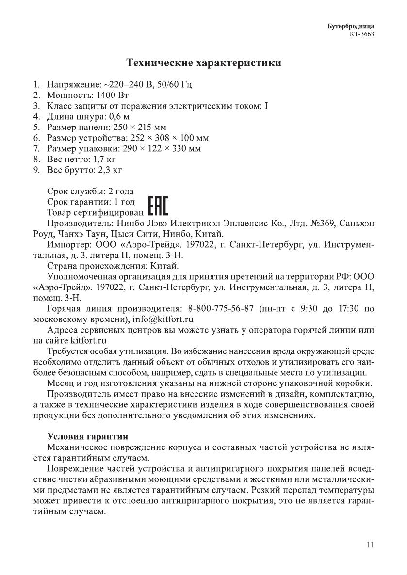 Данная инструкция на русском языке предназначена для бутербродницы Kitfort KT-3663, описывает принцип работы и основные моменты эксплуатации устройства. Перед первым включением рекомендуется внимательно изучить данное руководство.