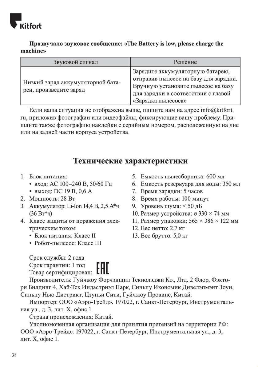 Данная инструкция на русском языке предназначена для пылесоса Kitfort KT-545, описывает принцип работы и основные моменты эксплуатации устройства. Перед первым включением рекомендуется внимательно изучить данное руководство.