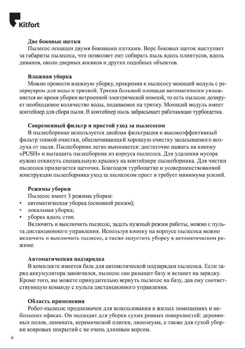 Данная инструкция на русском языке предназначена для пылесоса Kitfort KT-545, описывает принцип работы и основные моменты эксплуатации устройства. Перед первым включением рекомендуется внимательно изучить данное руководство.