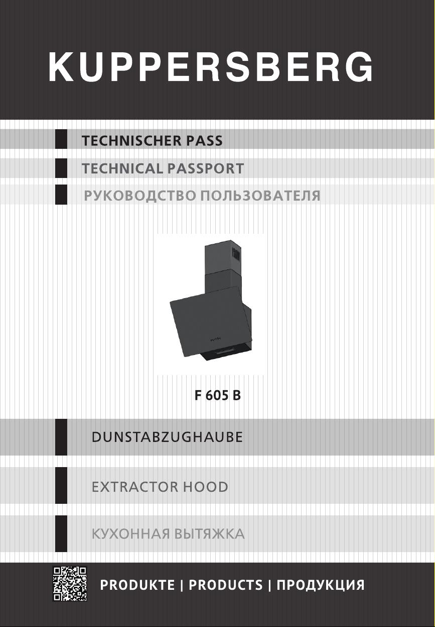 Данная инструкция на русском языке предназначена для вытяжки Kuppersberg F 605, описывает принцип работы и основные моменты эксплуатации устройства. Перед первым включением рекомендуется внимательно изучить данное руководство.