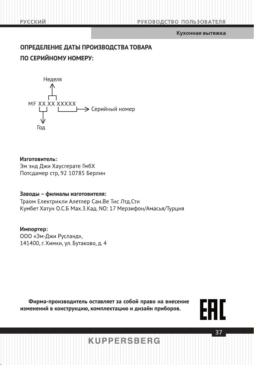 Данная инструкция на русском языке предназначена для вытяжки Kuppersberg F 693, описывает принцип работы и основные моменты эксплуатации устройства. Перед первым включением рекомендуется внимательно изучить данное руководство.