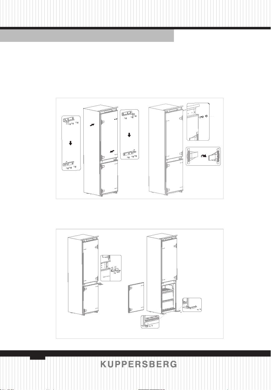 и верхнюю петли холодильного отделе-