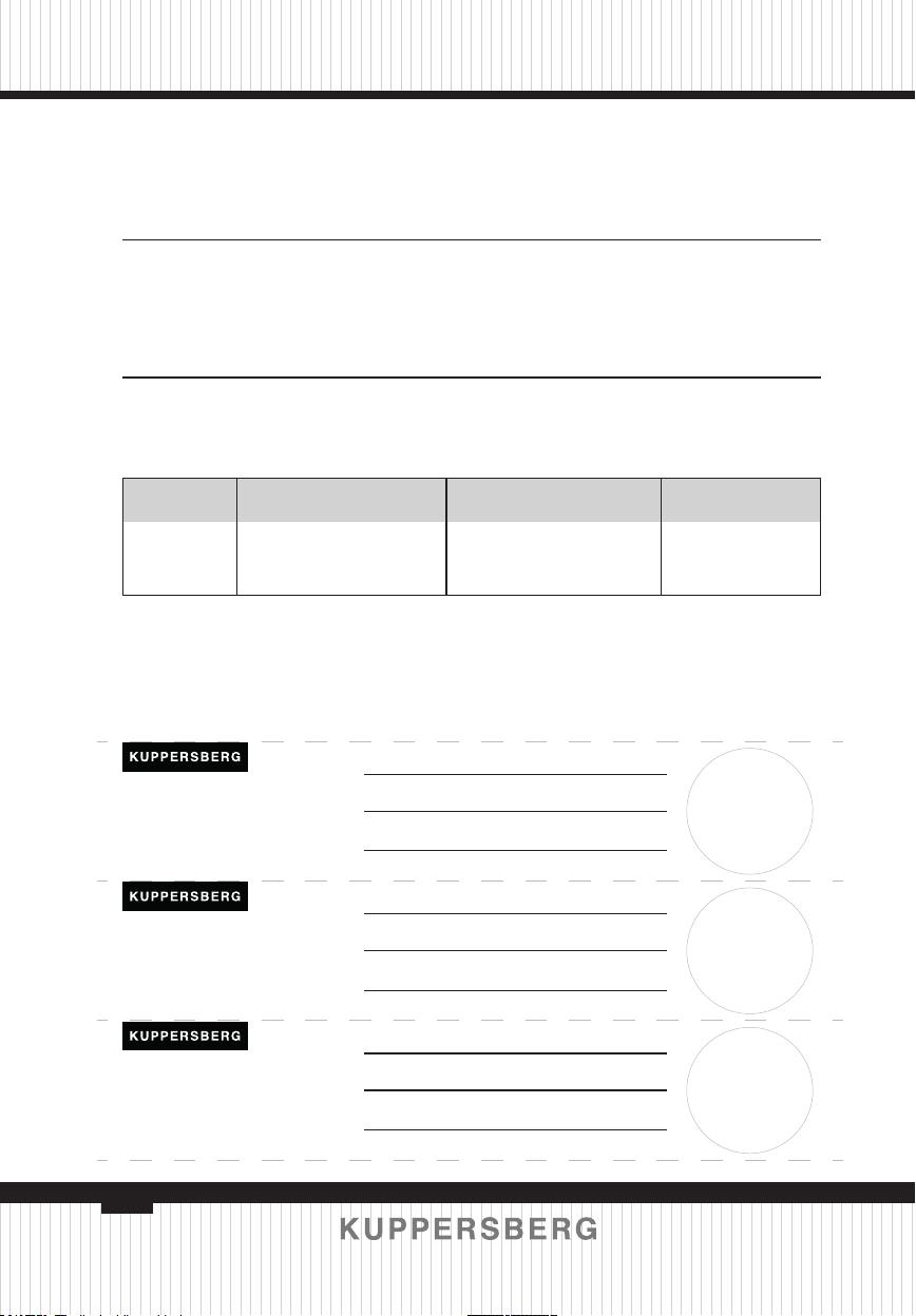 сервисного центра KUPPERSBERG. При подключении изделия через АСЦ KUPPERSBERG, гарантийный срок исчисляется с Даты подключения