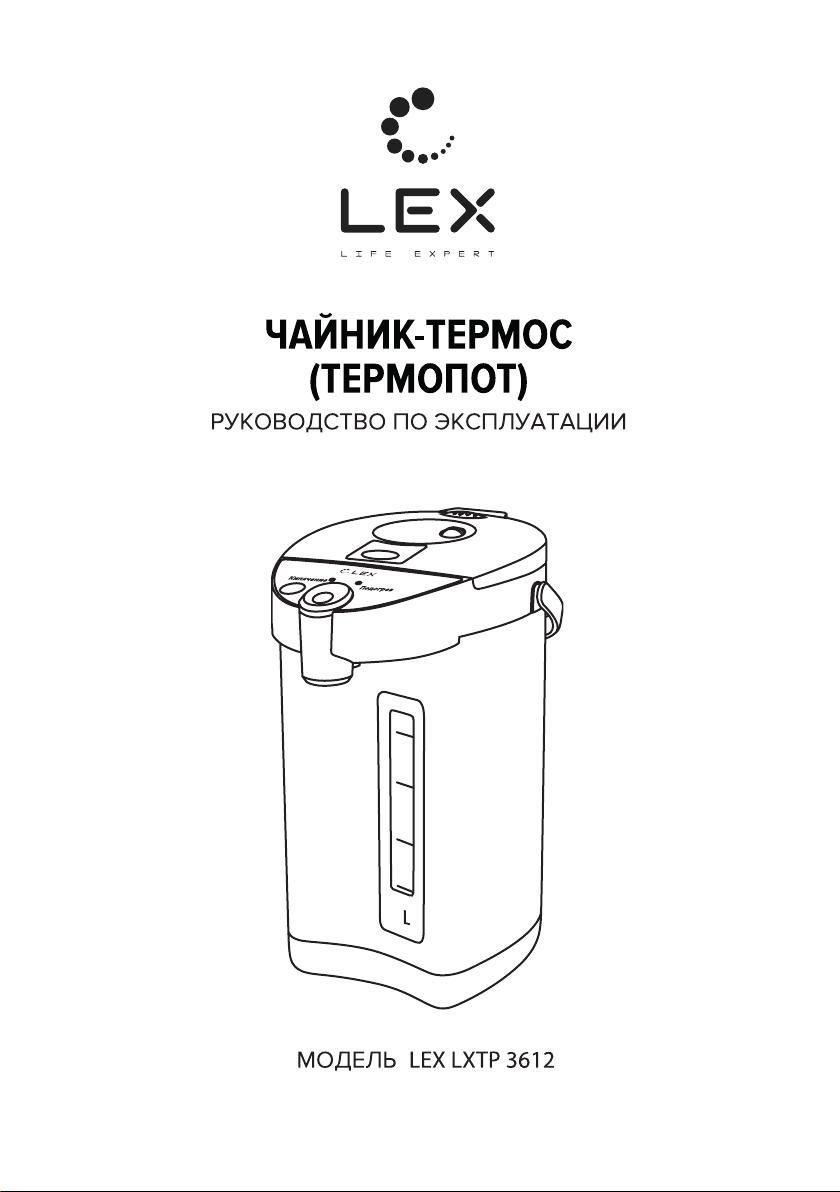 Данная инструкция на русском языке предназначена для термопота Lex LXTP 3612, описывает принцип работы и основные моменты эксплуатации устройства. Перед первым включением рекомендуется внимательно изучить данное руководство.