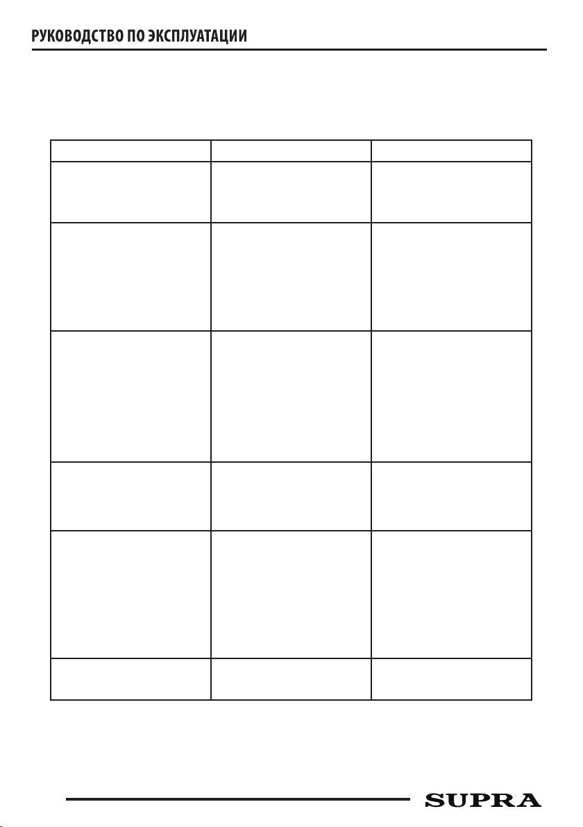 При возникновении неполадки воспользуйтесь нижеприведенной таблицей, где указано, на что следует