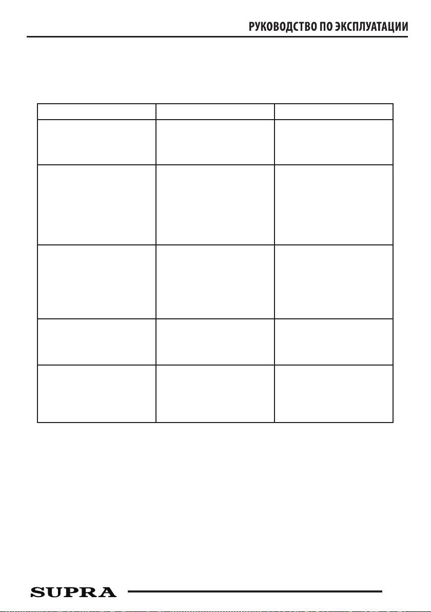 При возникновении неполадки воспользуйтесь нижеприведенной таблицей, где указано, на что следует