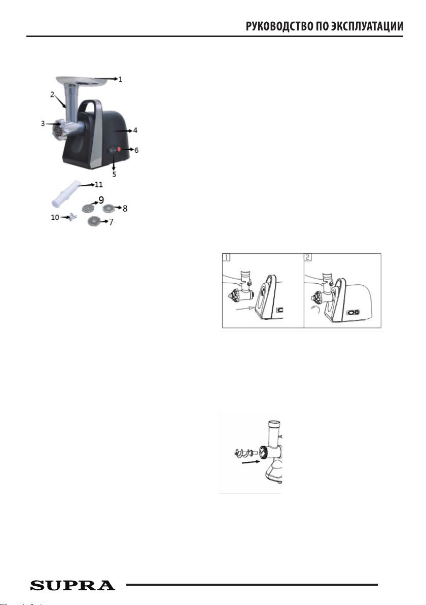 Данная инструкция на русском языке предназначена для мясорубки SUPRA MGS-1991, описывает принцип работы и основные моменты эксплуатации устройства. Перед первым включением рекомендуется внимательно изучить данное руководство.