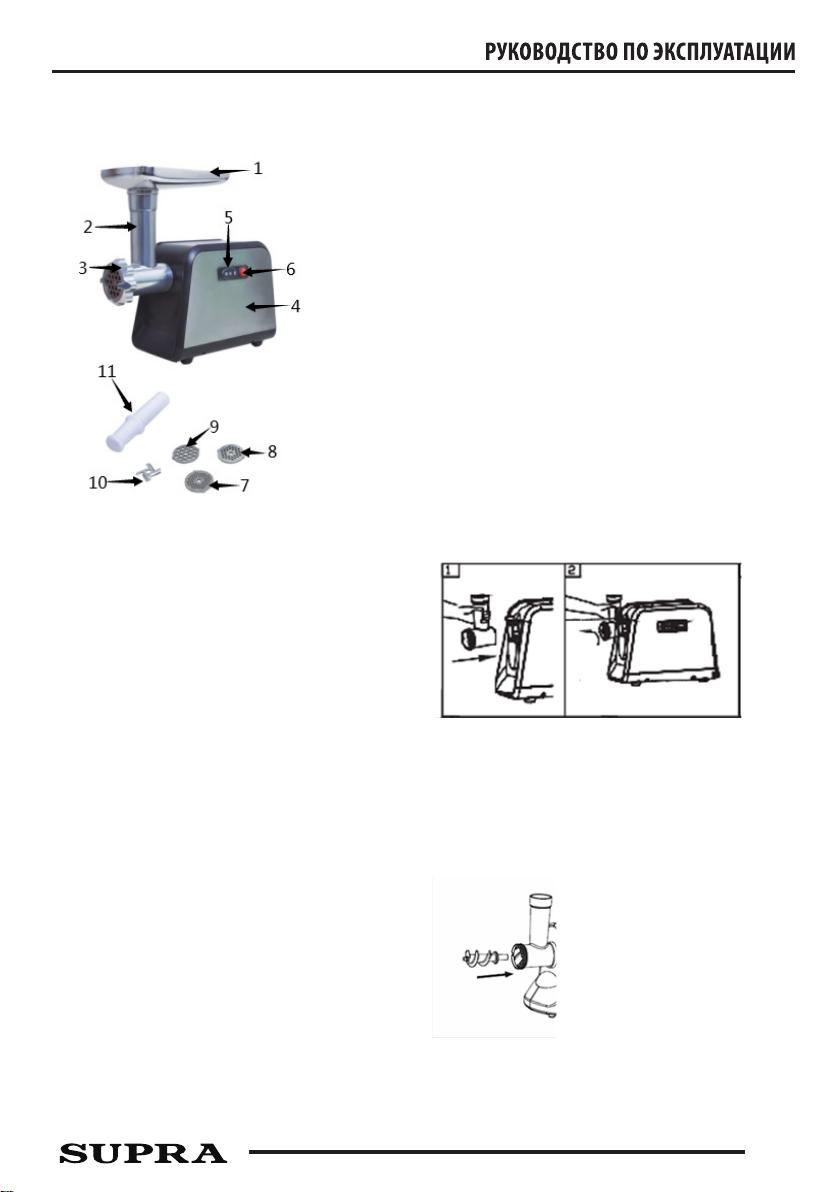 Данная инструкция на русском языке предназначена для мясорубки SUPRA MGS-1992, описывает принцип работы и основные моменты эксплуатации устройства. Перед первым включением рекомендуется внимательно изучить данное руководство.