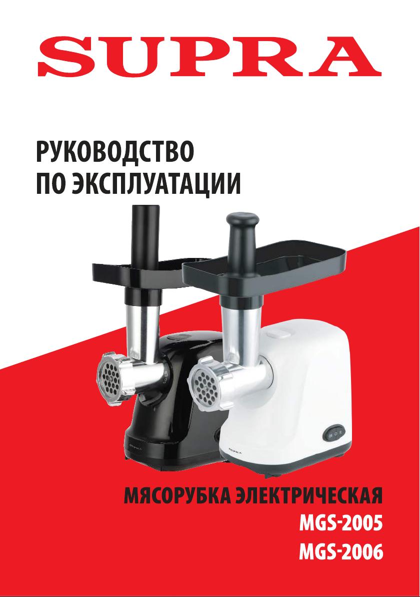 Данная инструкция на русском языке предназначена для мясорубки SUPRA MGS-2005, описывает принцип работы и основные моменты эксплуатации устройства. Перед первым включением рекомендуется внимательно изучить данное руководство.