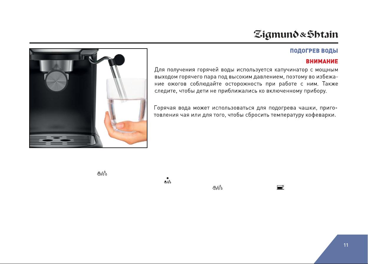 Данная инструкция на русском языке предназначена для кофемашины Zigmund & Shtain Al caffe ZCM-900, описывает принцип работы и основные моменты эксплуатации устройства. Перед первым включением рекомендуется внимательно изучить данное руководство.