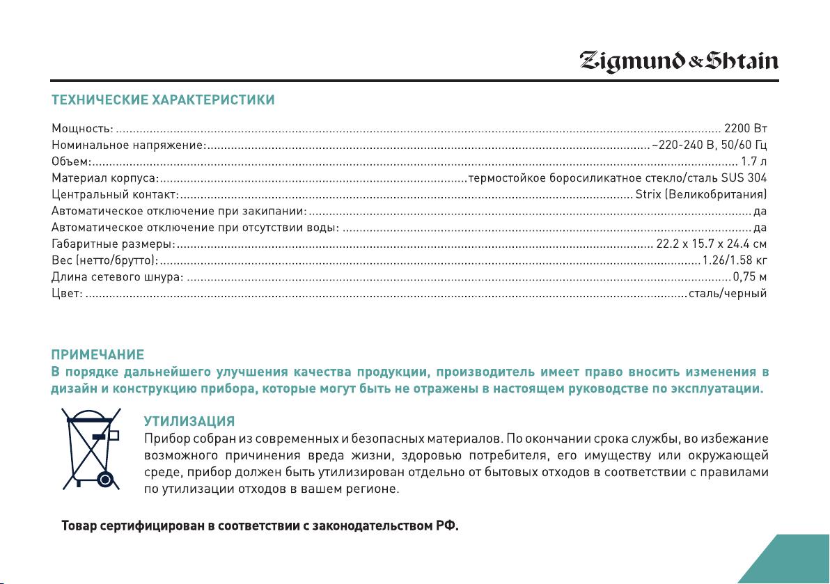 Данная инструкция на русском языке предназначена для чайника Zigmund & Shtain KE-823, описывает принцип работы и основные моменты эксплуатации устройства. Перед первым включением рекомендуется внимательно изучить данное руководство.