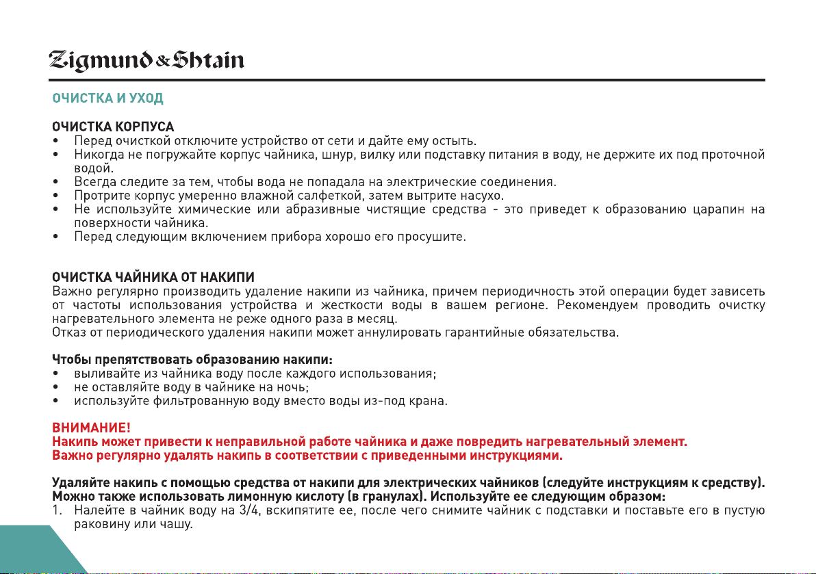 Данная инструкция на русском языке предназначена для чайника Zigmund & Shtain KE-83 SD, описывает принцип работы и основные моменты эксплуатации устройства. Перед первым включением рекомендуется внимательно изучить данное руководство.