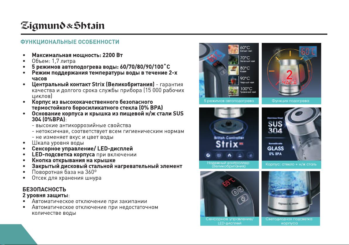 Данная инструкция на русском языке предназначена для чайника Zigmund & Shtain KE-83 SD, описывает принцип работы и основные моменты эксплуатации устройства. Перед первым включением рекомендуется внимательно изучить данное руководство.