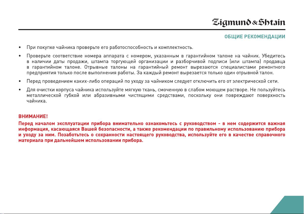 Данная инструкция на русском языке предназначена для чайника Zigmund & Shtain KE-83 SD, описывает принцип работы и основные моменты эксплуатации устройства. Перед первым включением рекомендуется внимательно изучить данное руководство.