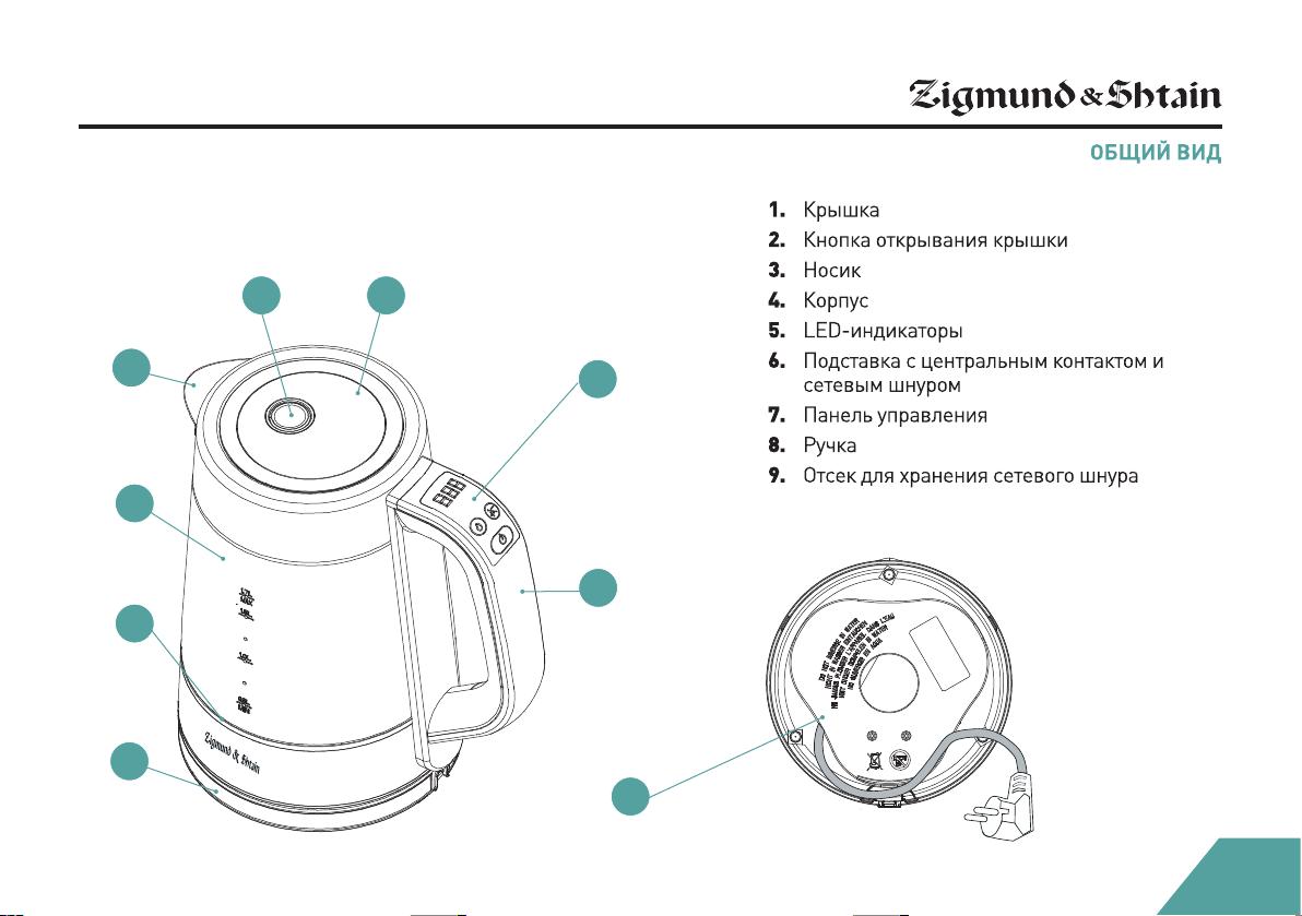 Данная инструкция на русском языке предназначена для чайника Zigmund & Shtain KE-83 SD, описывает принцип работы и основные моменты эксплуатации устройства. Перед первым включением рекомендуется внимательно изучить данное руководство.